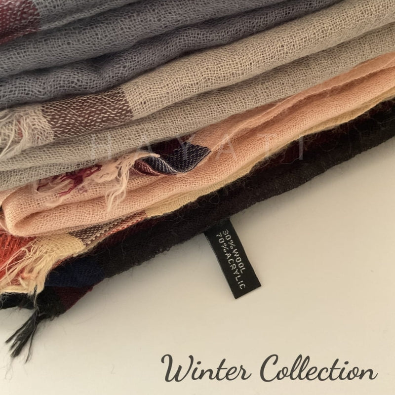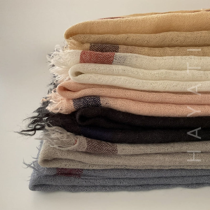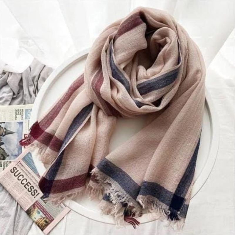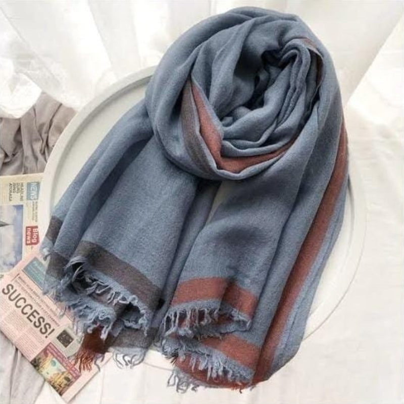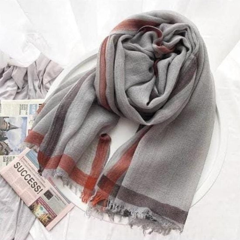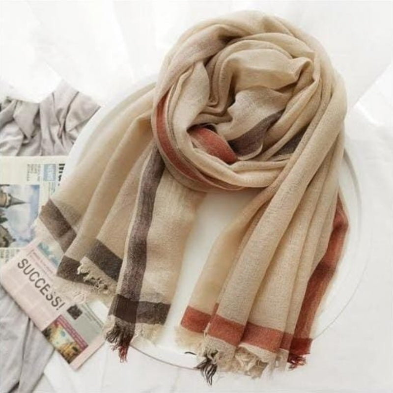 Wood Palette –  A range of stylish and warm scarves designed to keep you cozy and fashionable during the colder months. It is plain with a line of color along the edges.