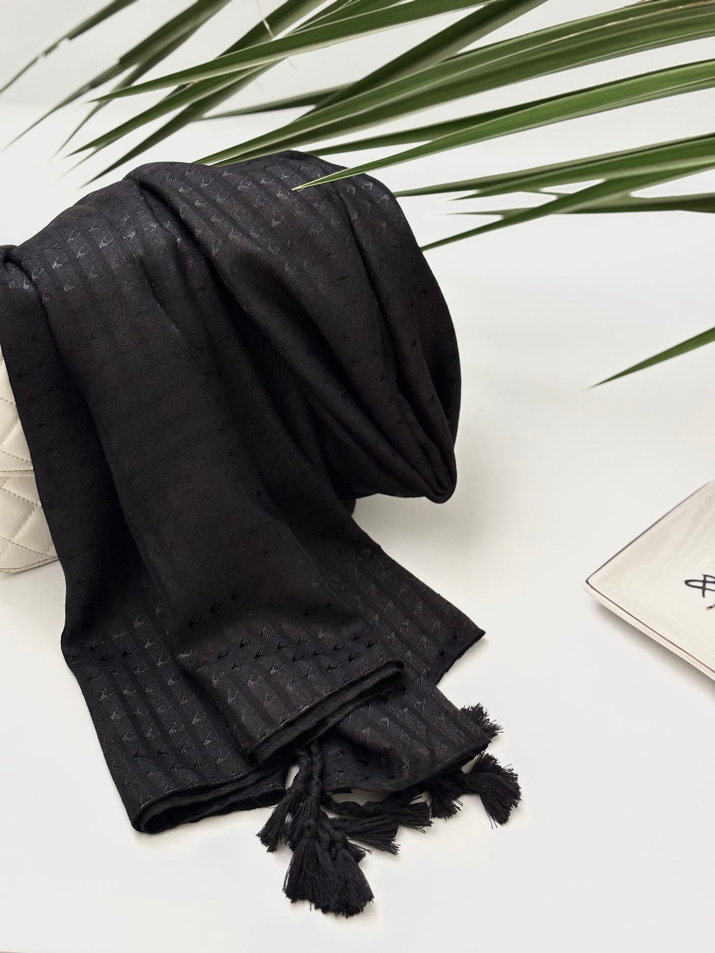 This beautiful scarf collection features a variety of rich and versatile shades, perfect for different occasions. The self print pattern on each scarf with subtle shimmering accents that catch light adds a refined detail, making them ideal for both everyday wear and formal settings.