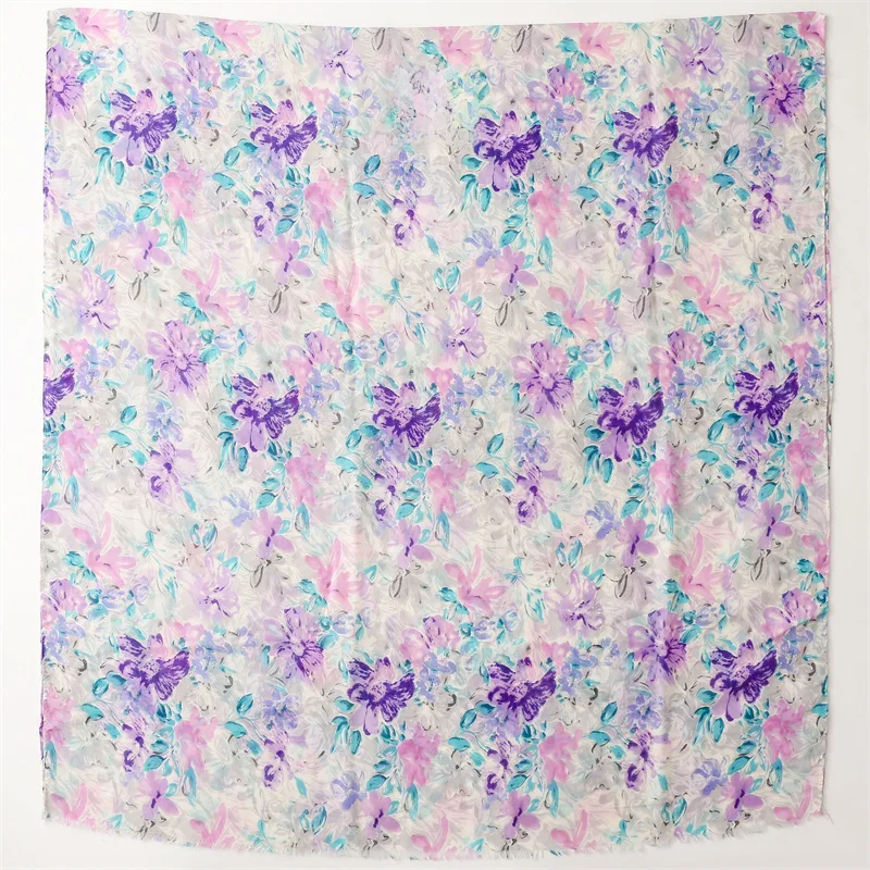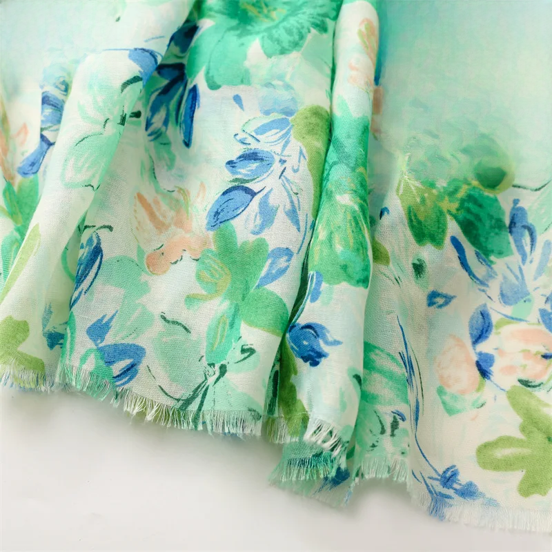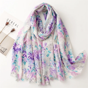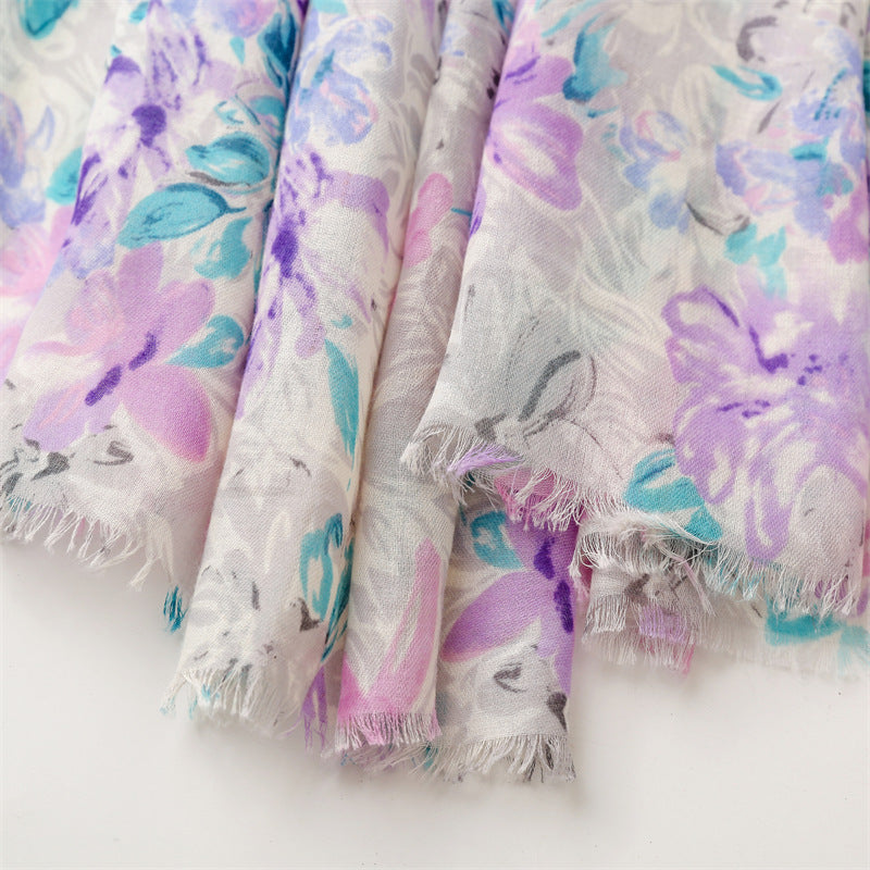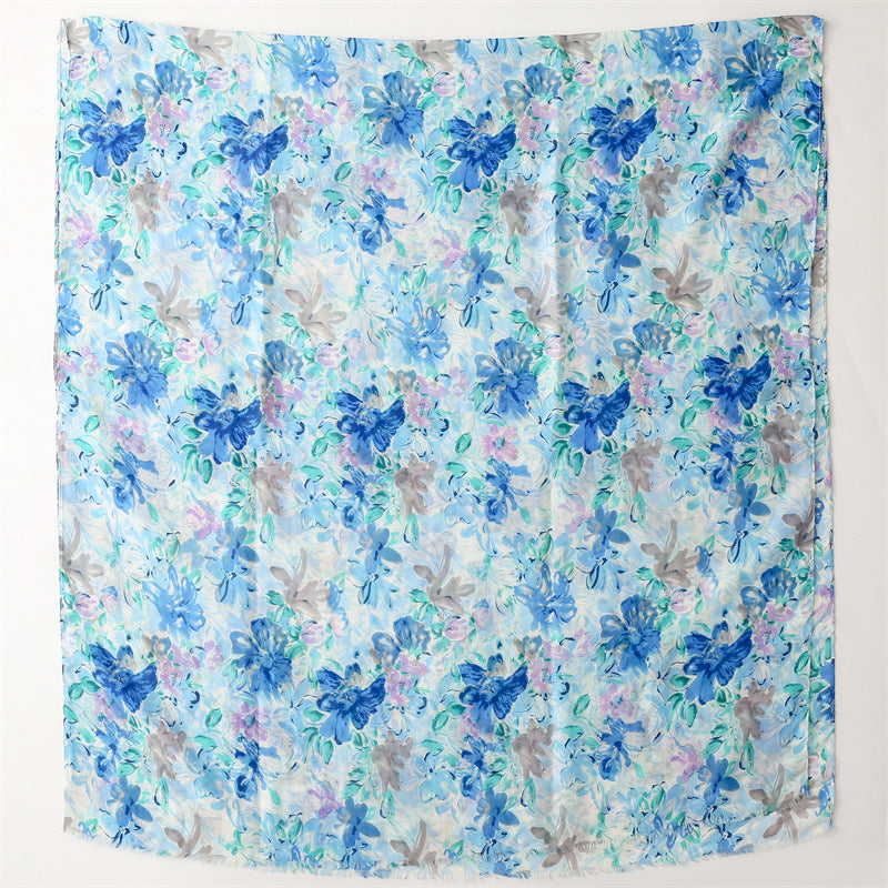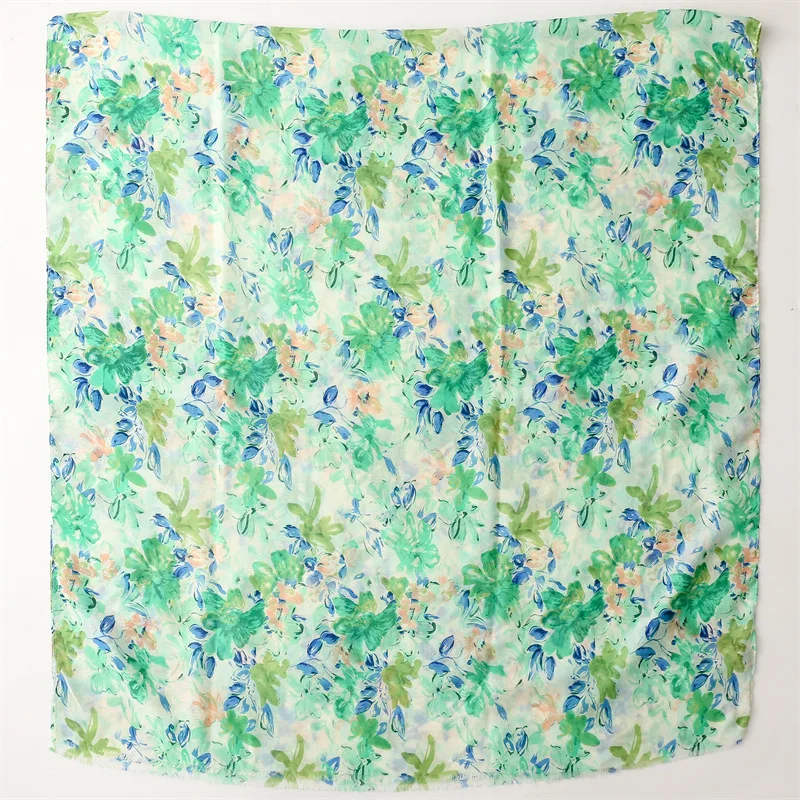 Fresh, soft, and full of charm—this lightweight hijab features a dreamy watercolor floral print in soothing shades of green, blue, purple, and pink. The airy fabric drapes effortlessly, making it perfect for everyday wear, spring outings, or a cheerful daytime look. Its subtle frayed edges give it a relaxed finish while maintaining elegance.
