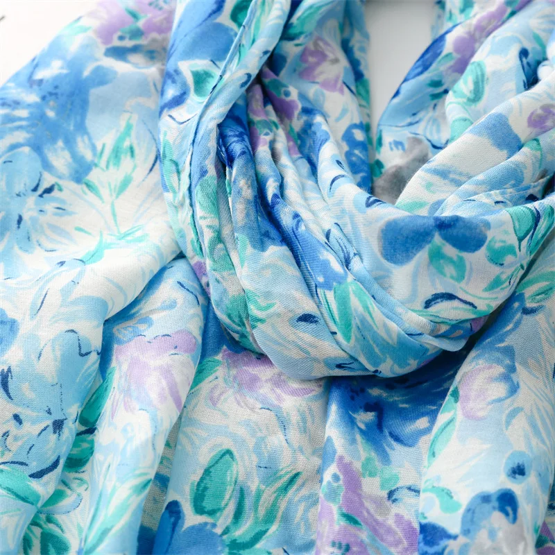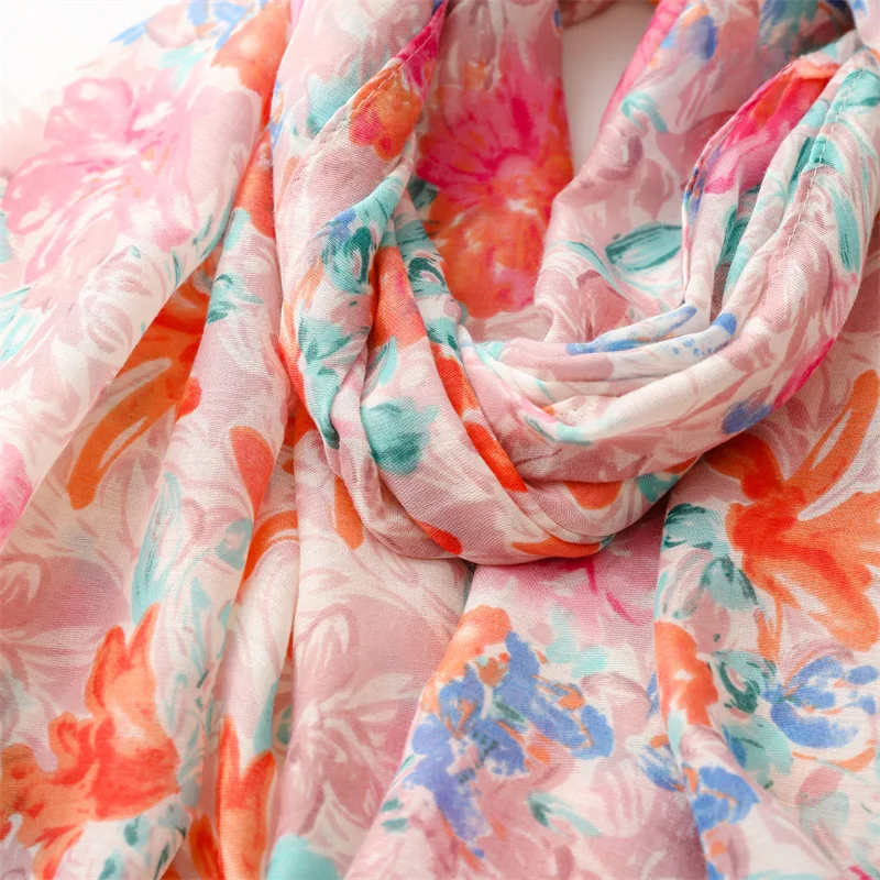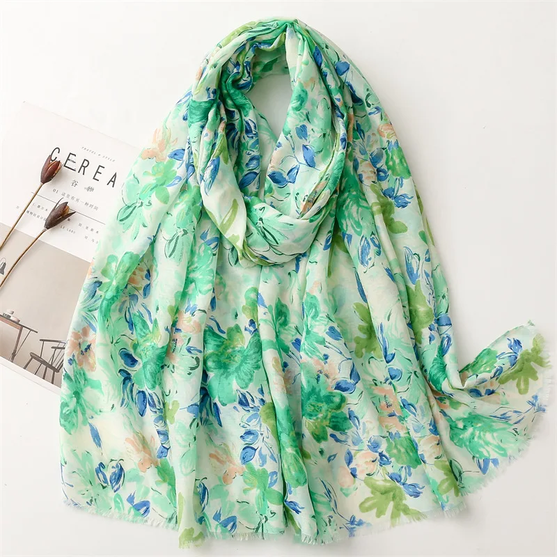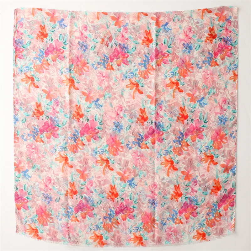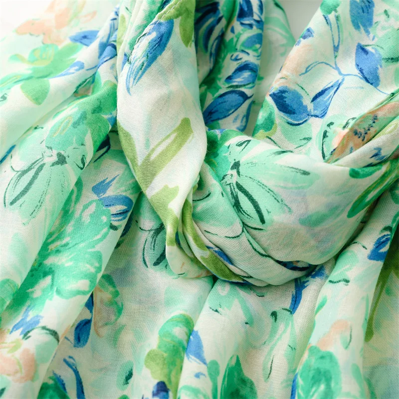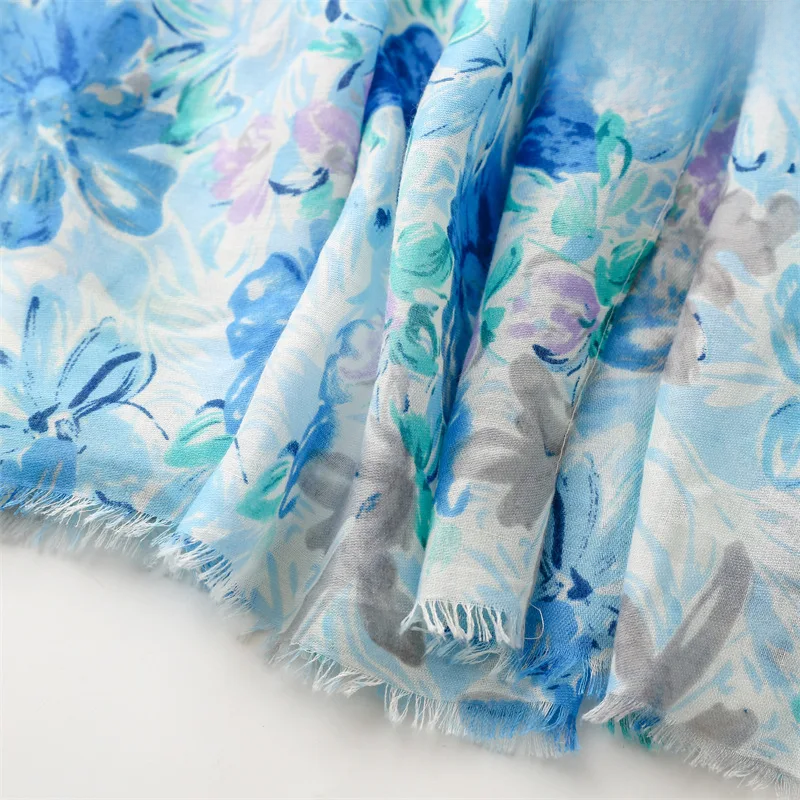 Fresh, soft, and full of charm—this lightweight hijab features a dreamy watercolor floral print in soothing shades of green, blue, purple, and pink. The airy fabric drapes effortlessly, making it perfect for everyday wear, spring outings, or a cheerful daytime look. Its subtle frayed edges give it a relaxed finish while maintaining elegance.