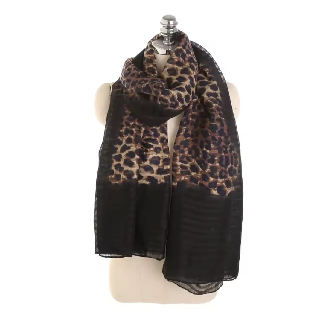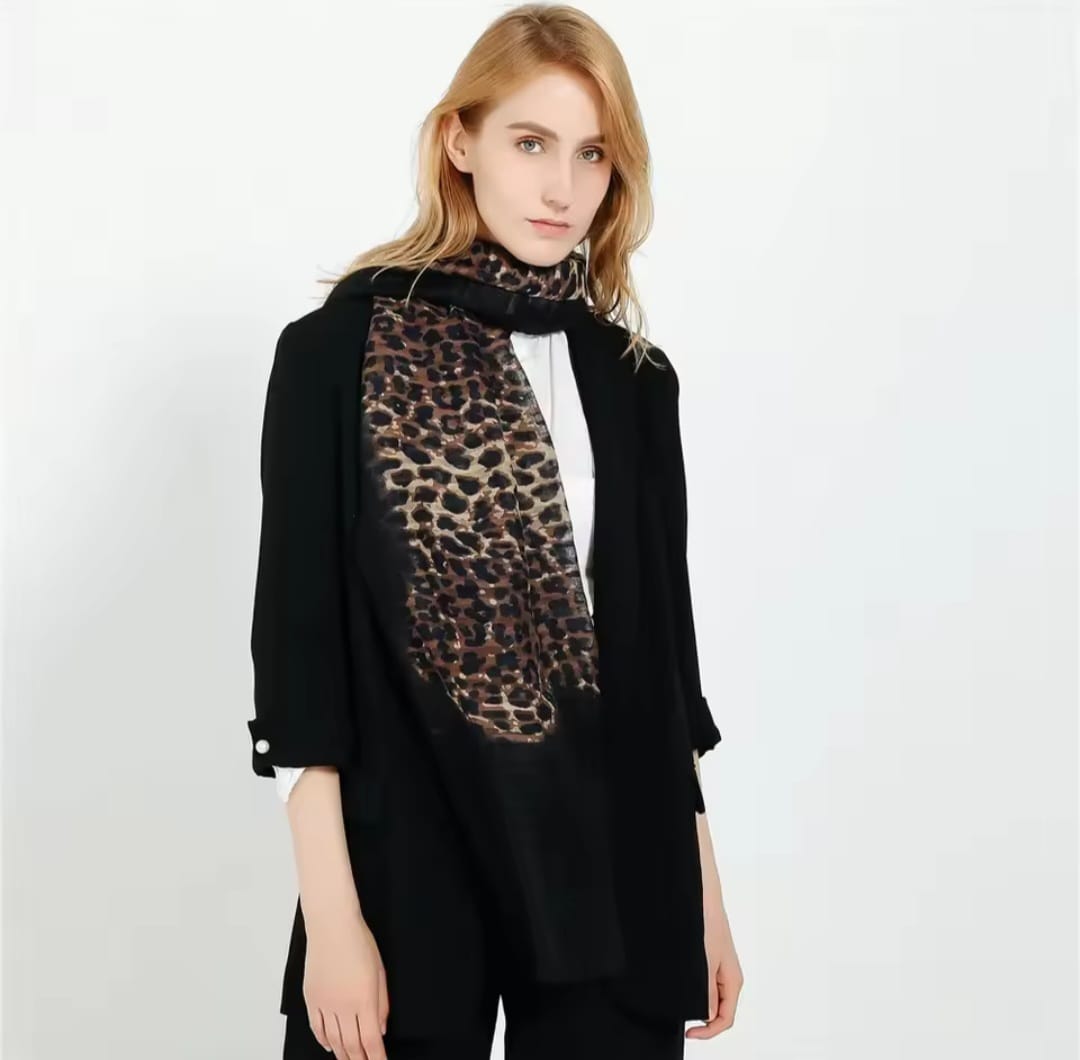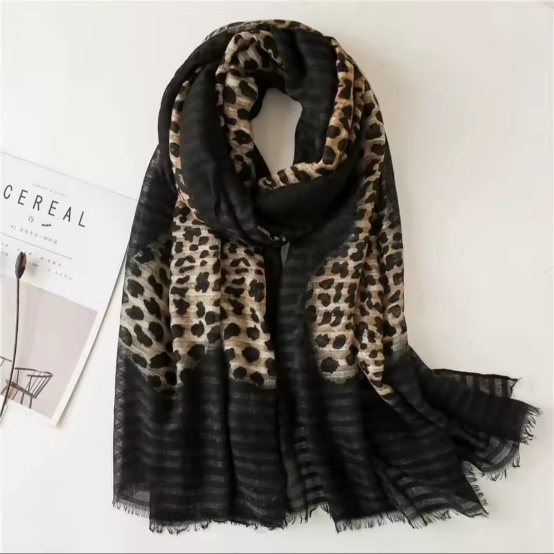 Unleash your wild side with our Leora Collection, where elegance meets untamed beauty. These scarves feature striking leopard-inspired prints, beautifully contrasted with deep black tones for a bold yet versatile look.