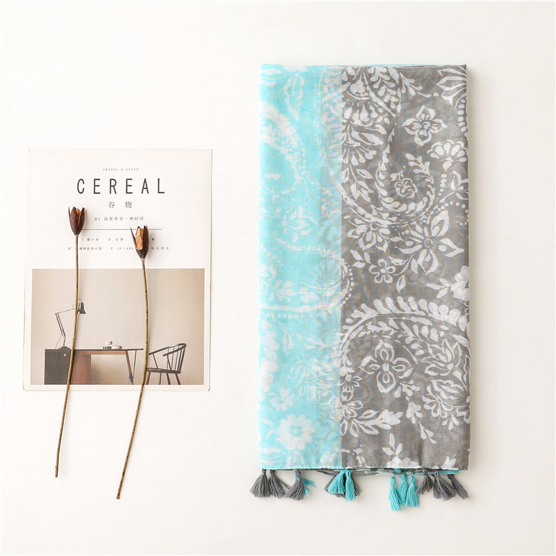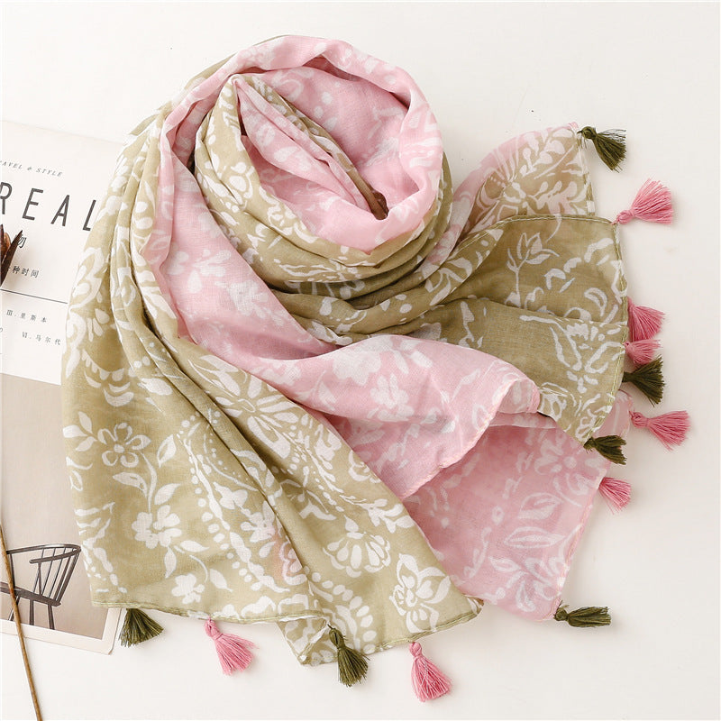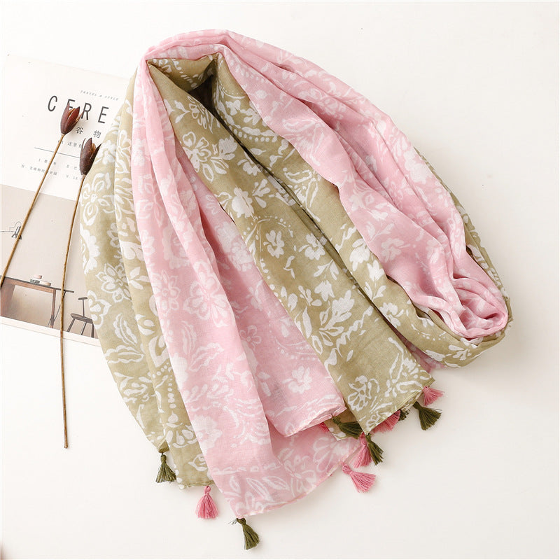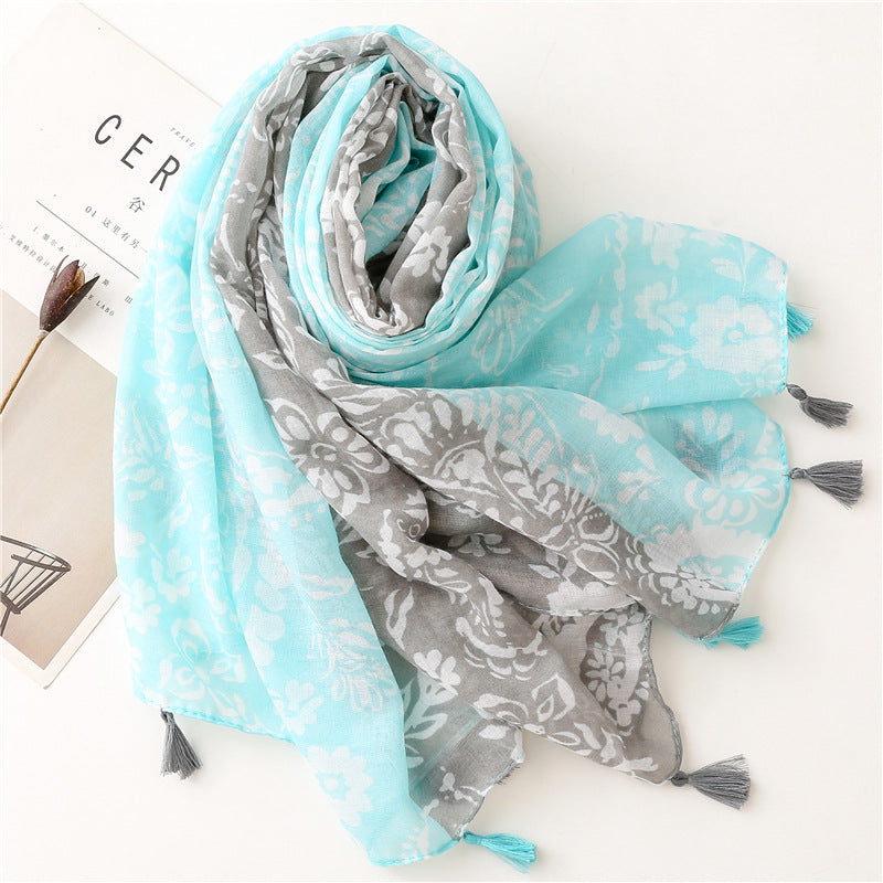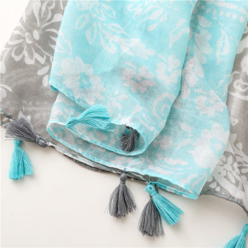 A soft blend of contrasting hues, delicate floral prints, and playful tassels—our Misty scarves are designed to add a touch of freshness and charm to your everyday look. Whether it’s the pastel pink and olive or the cool aqua and grey, each piece brings the perfect balance of elegance and ease.